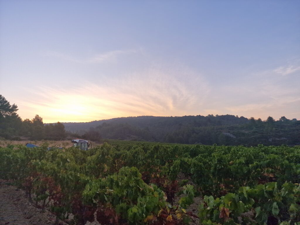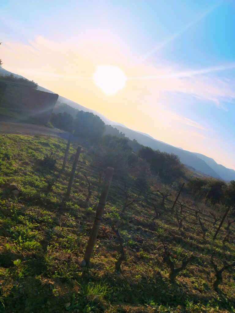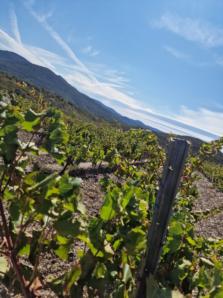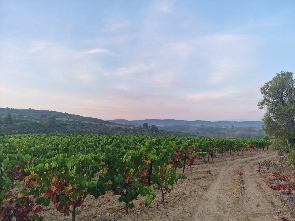 Le domaine s’étend sur 10,4 hectares de vignes, à côté de 9 hectares de lande et de garrigues qui embaument le thym et le romarin sous le soleil du sud. Nos cépages, fidèles compagnons de route, sont le Carignan N, le Grenache N, la Syrah N, le Grenache gris et le Muscat petit grain. Chacun d’eux apporte sa note à notre symphonie de saveurs, cultivés avec amour et patience, sous le regard bienveillant de la nature.